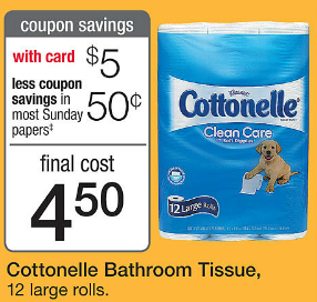 BUY 2 Cottonelle Bathroom Tissue 12 Lg Roll Pkg Sale $5.00 (Reg $5.49)