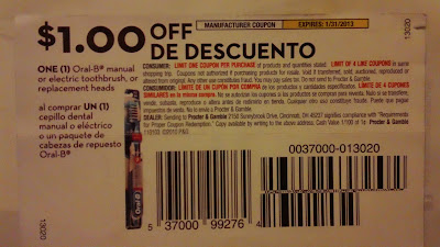 USE $1/1 OralB Manual or Electric Toothbrush or Replacements Heads Coupon from inside Crest Toothpaste Packages Exp 1/31/13 ~ See Picture Below